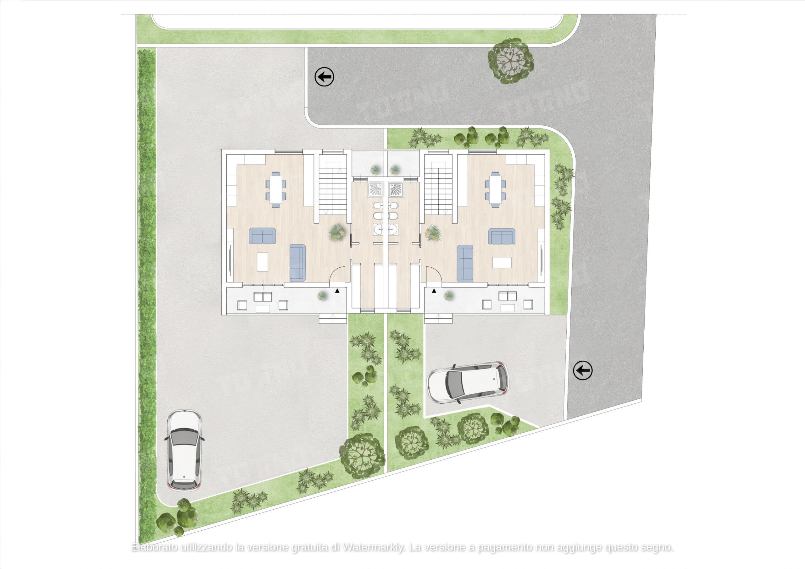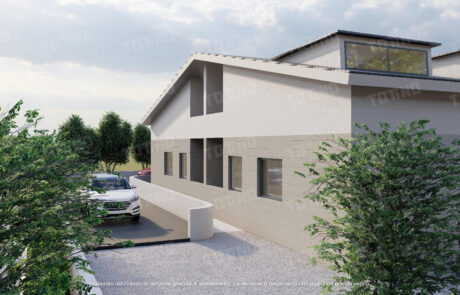 Progetto architettonico per due unità indipendenti, con spazi interni razionali e aree esterne vivibili;